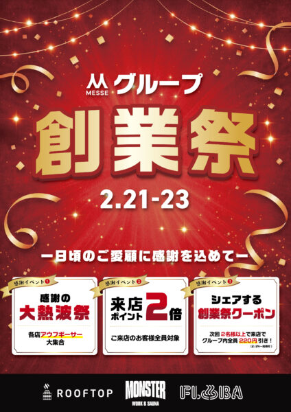 次回2名さま以上のご来店でグループ全員220円割引😳