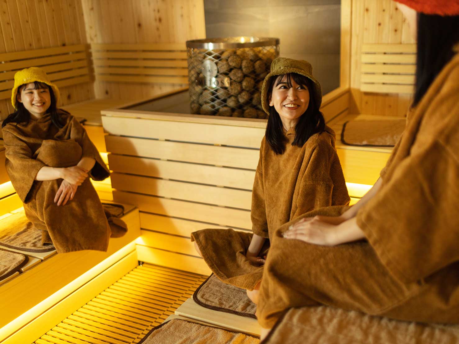 サウナ室内は対流を綿密に計算された設計で、壁から天井に至るまで国産ヒノキをふんだんに使用しており、心地よい香りがします。サウナマットをお客様おひとり様ずつに貸し出しておりますので、清潔な環境でお楽しみいただけます。